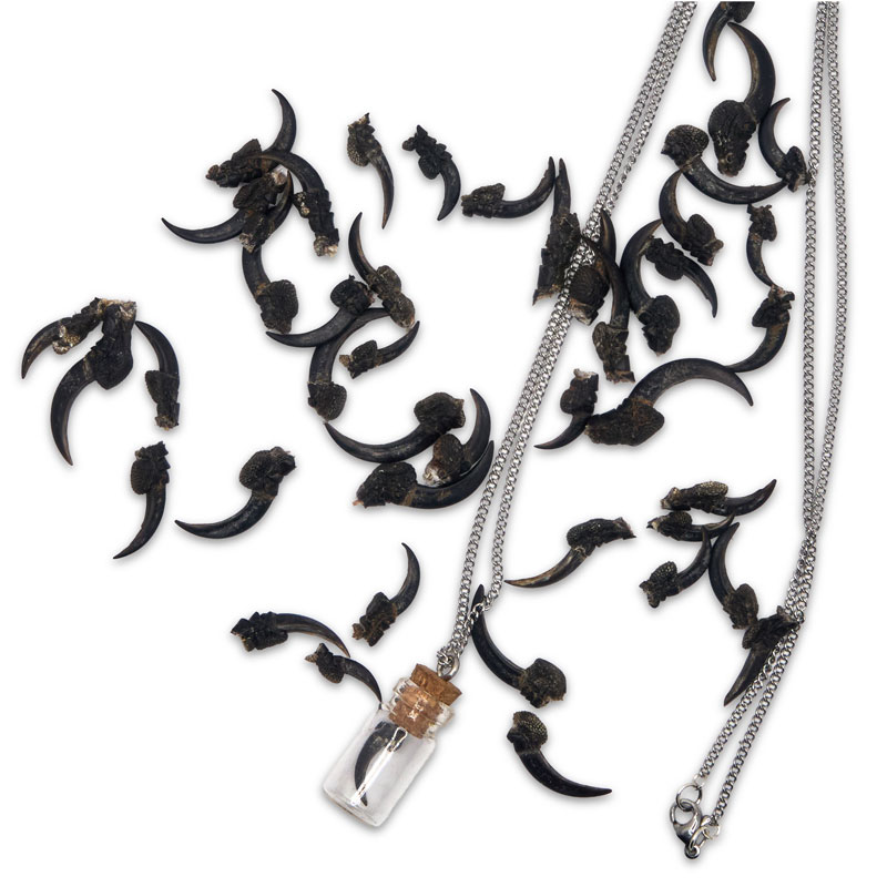 UK sourced real Carrion Crow claws (Corvus carone). Claw are variable sizes. Preserved in their natural state, cleaned in soapy water and dried out with zero odours. The item shown is an example of what will be supplied (bottles and chains not included).